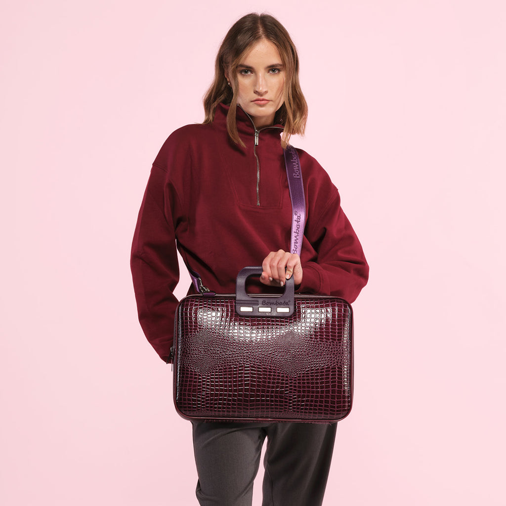 Das glänzende Material mit Krokodiltextur macht diese Tasche zu einem modischen und originellen Accessoire. Neu: jetzt auch in hellblau erhältlich. Er bietet Platz für Laptops von 15,6" bis 16" sowie für Zubehör und Dokumente. Anstelle der Laptoptasche gibt es bei den 13"-14" Taschen Riemen