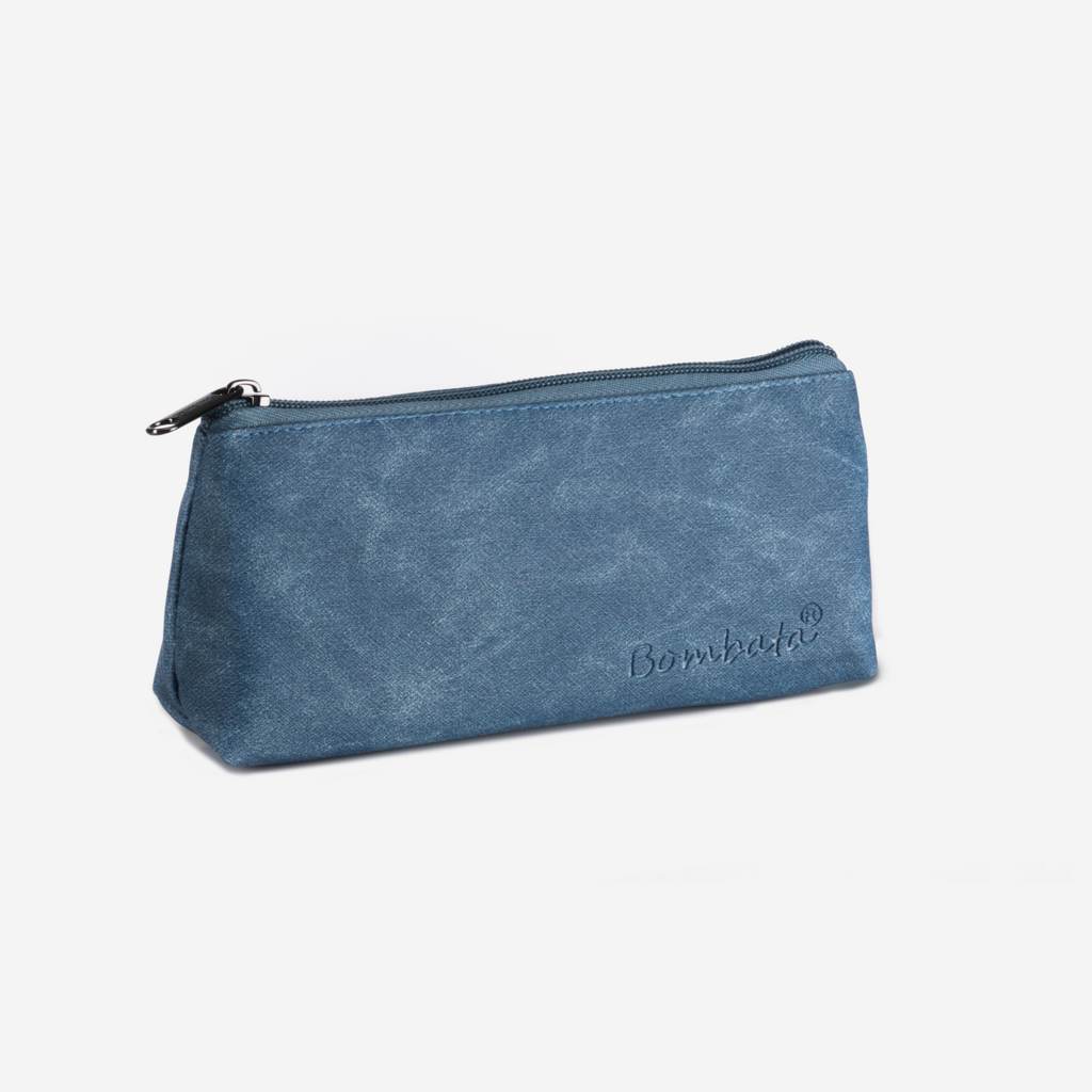 Ein leichtes und vielseitiges Etui aus einem Material, das einen Denim-Jeans-Stoff-Effekt simuliert. Nützlich für den Transport von Stiften, Bleistiften, Make-up und Accessoires.