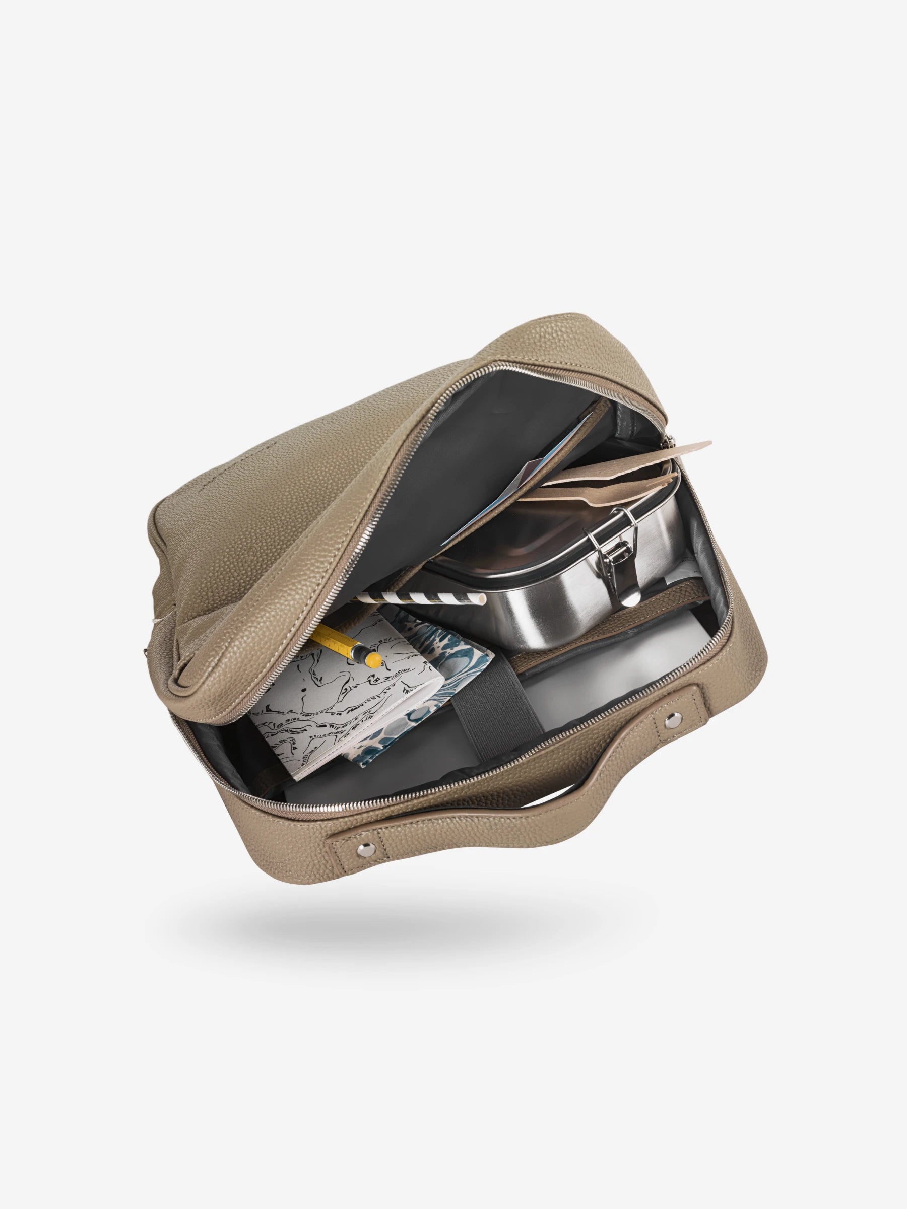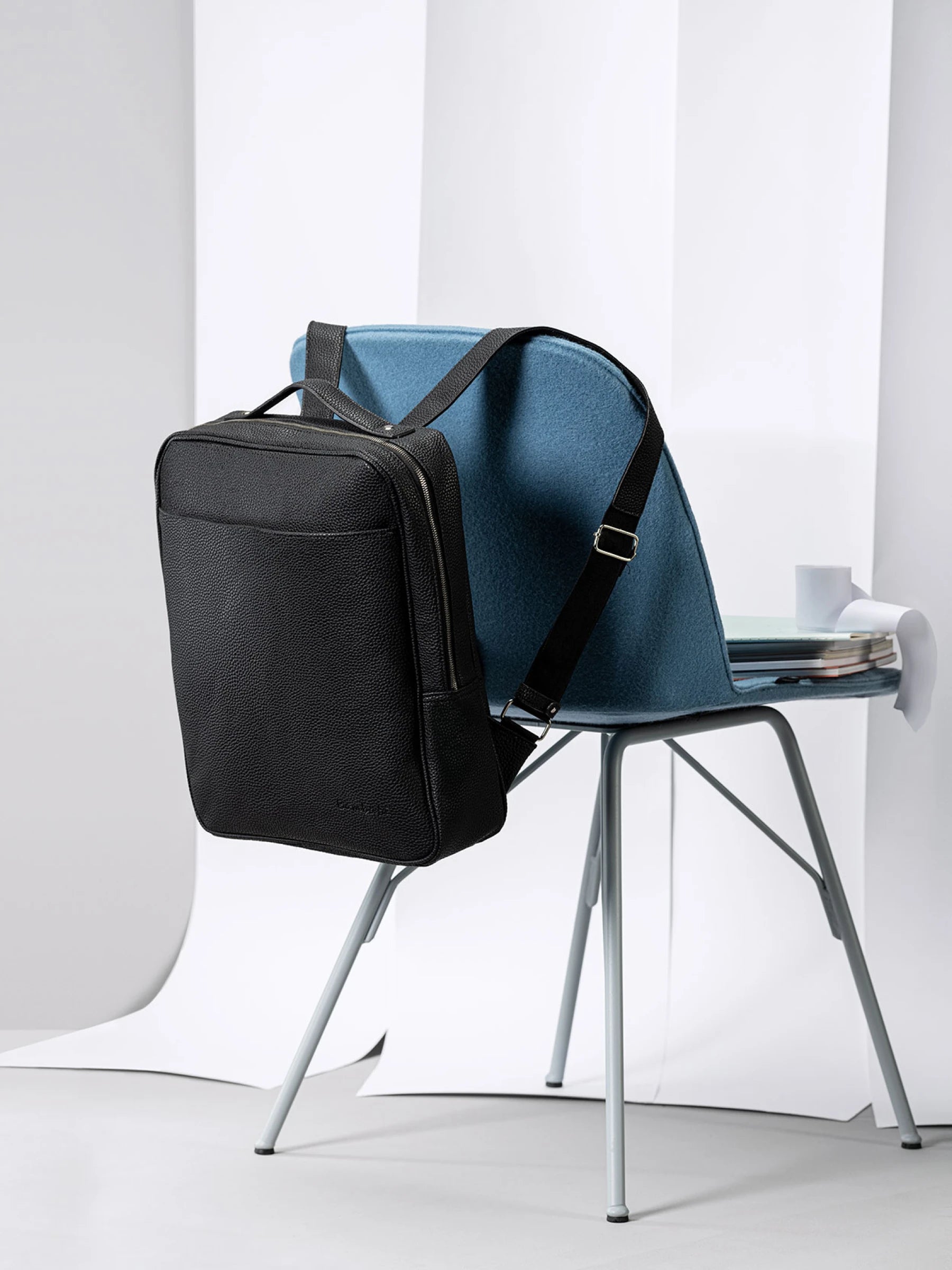 A backpack with a classic design, updated to meet modern needs. The interior space is divided to accommodate a 15.6" to 16" laptop, along with documents and personal accessories.
