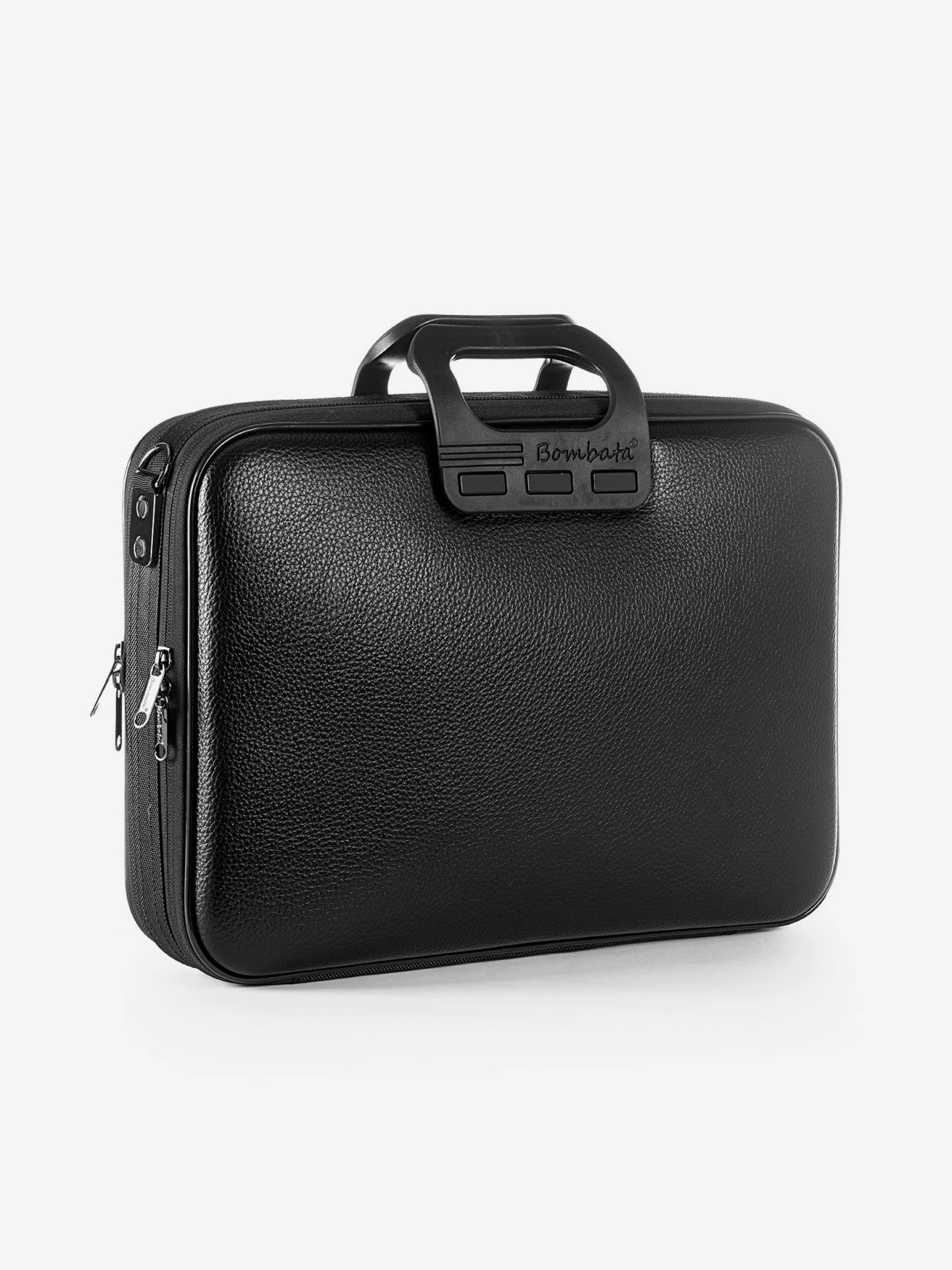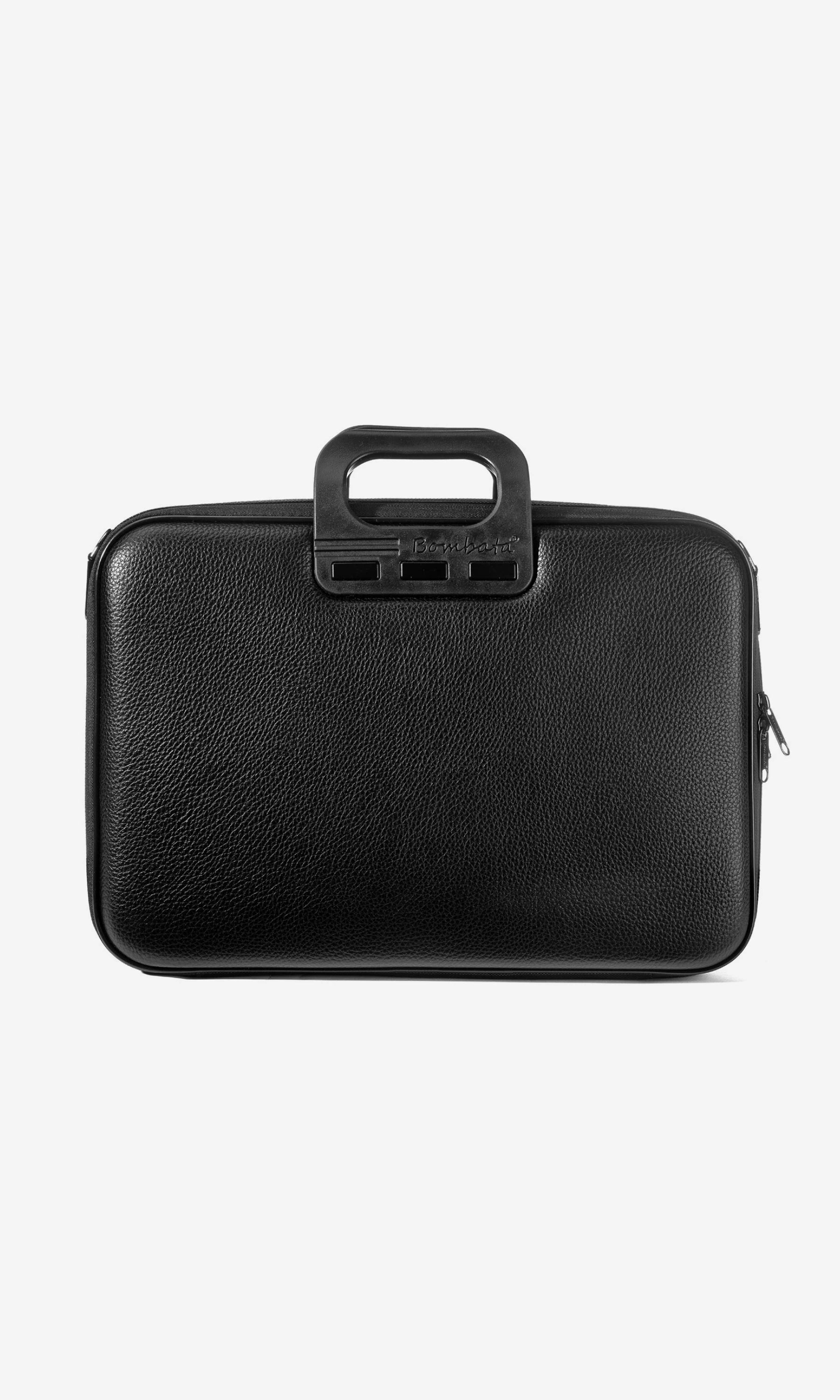 The Bombata Business Classic All Black is a large bag that can take you from morning to night. Its uniqueness lies in its all-black finishes, for a timeless all-black look. Thanks to two large separate compartments, you can safely carry electronic devices, accessories, books, and more, avoiding unwanted scratches and bumps. This limited-edition bag features a comfortable matching shoulder strap, exterior zips, and interior pockets.