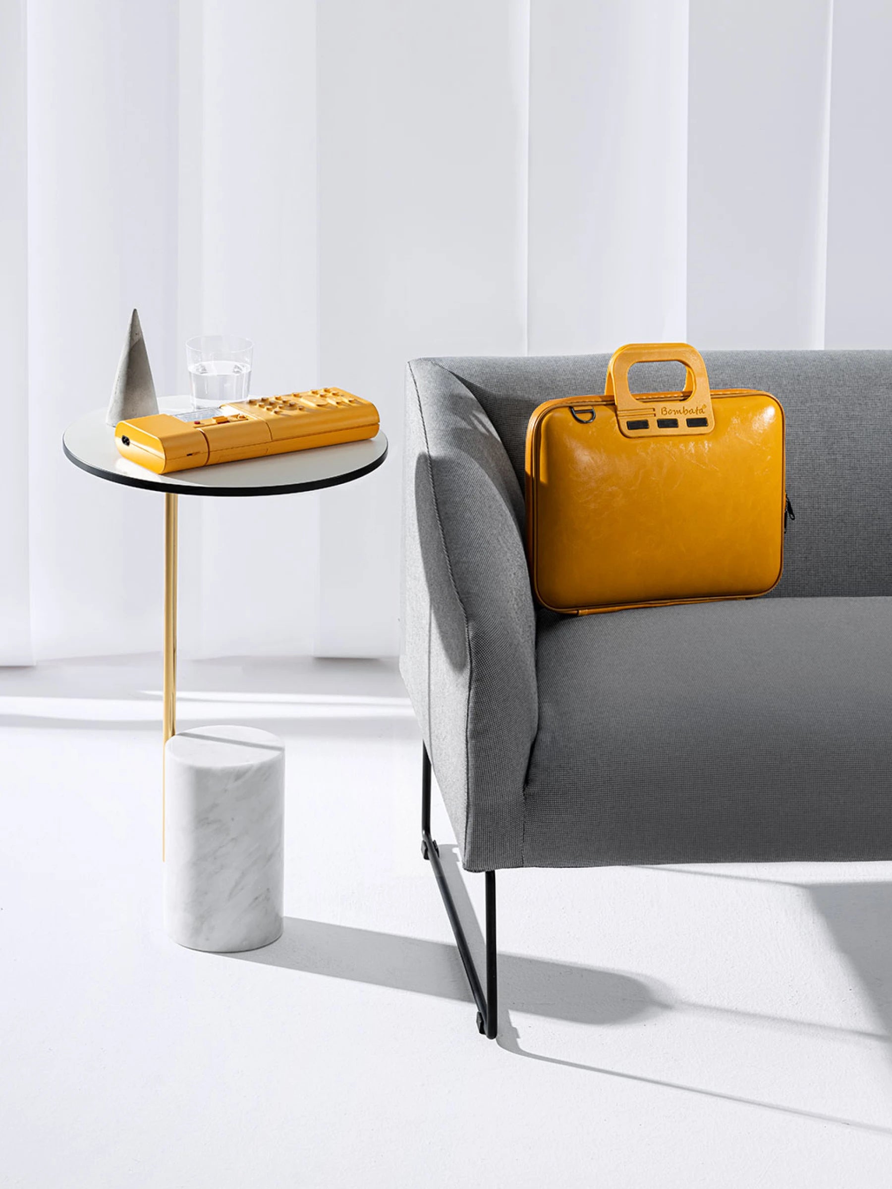 This bag is the evolution of the best-selling Bombata Classic. New materials, a new handle, and an improved interior take the bag to a whole new level. It can accommodate a laptop and accessories thanks to its numerous pockets.