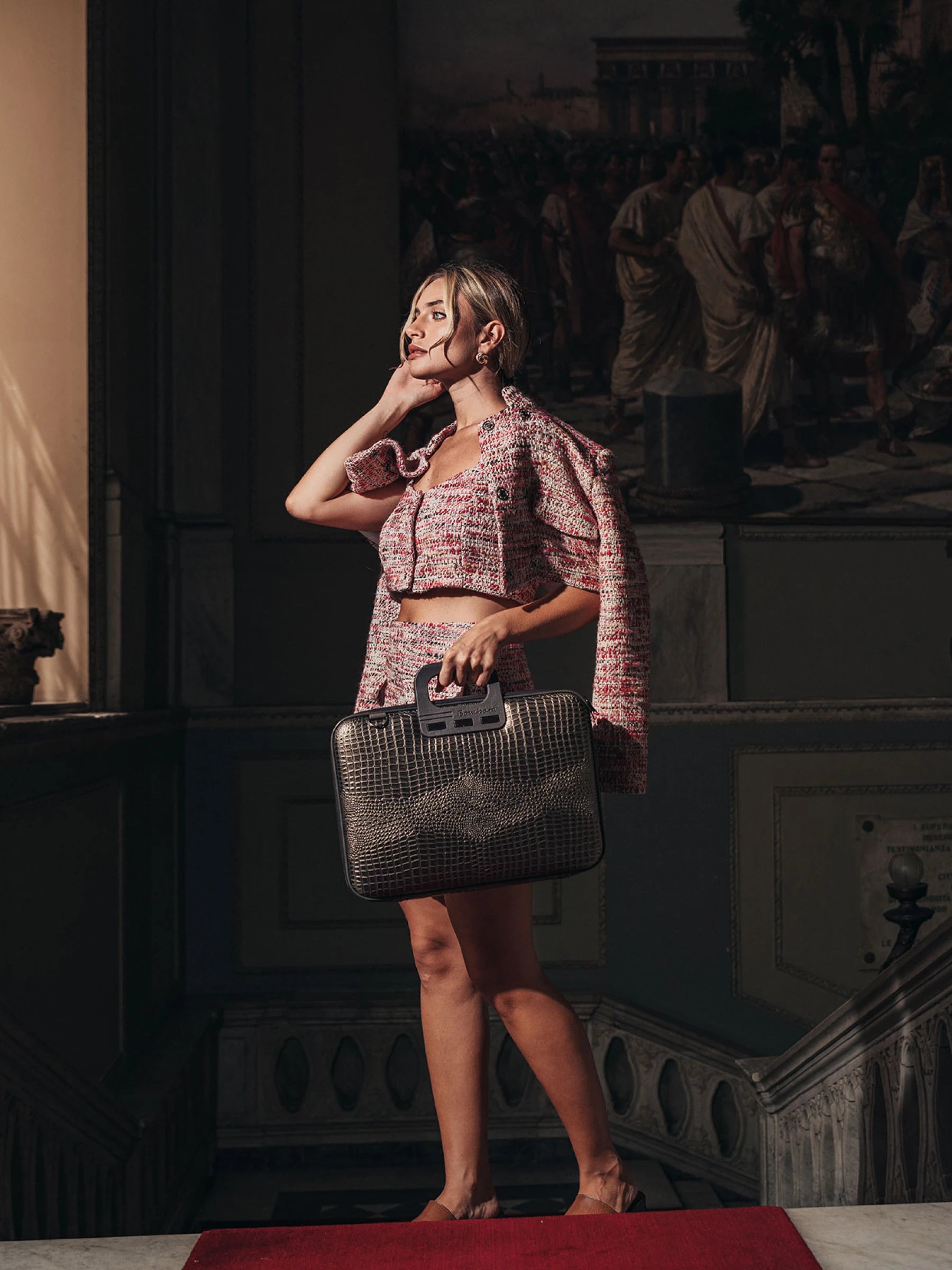 The glossy crocodile-textured lining makes it a stylish and original accessory. Equipped with a new handle, it can accommodate a 15.6" to 16" laptop, along with accessories and documents.