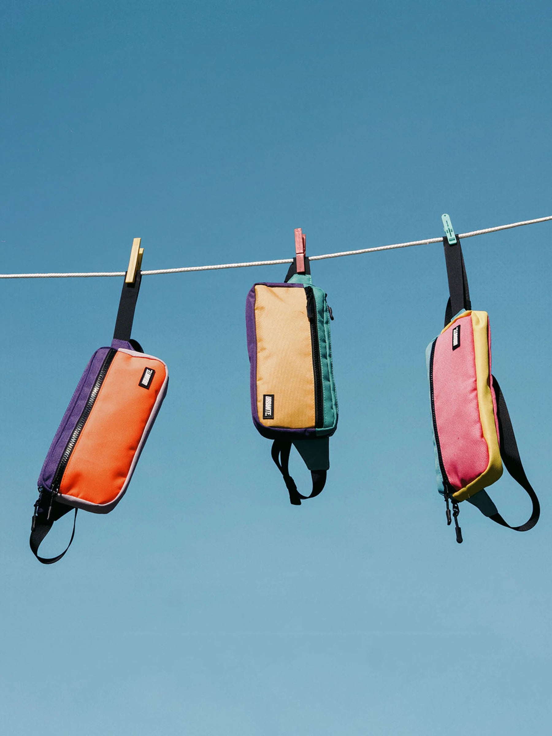 The La Paz Sling Bag reinterprets the great comeback of the bum bag with shapes and colors in true Urbanite style. It's lightweight and compact, designed to be easily tied around the waist or carried over the shoulder without weighing you down. Inside, it can hold a phone, wallet, and small items to carry on walks and hikes. Contrasting colors complete this bright and iconic look.